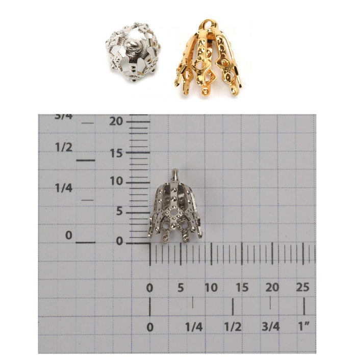 Los casquillos de campana se utilizan a menudo para realzar una cuenta o una piedra. Se pueden usar para "tapar" un lado de la cuenta o ambos. También se pueden utilizar para rematar el extremo de un collar de cuentas como en un collar, justo antes del cierre y el gancho.