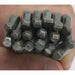 Diese Stempel mit rundem Schaft bestehen aus 1/4 Zoll dickem Rundstahl. Sie sind 3 Zoll lang und für die Verwendung auf Nichteisenmetallen gehärtet. Die Zeichenhöhe beträgt ungefähr 1,25 bis 1,50 mm, also etwas weniger als 1/16 Zoll. Die Länge des Abdrucks hängt von der Anzahl der Zeichen im Stempel ab.