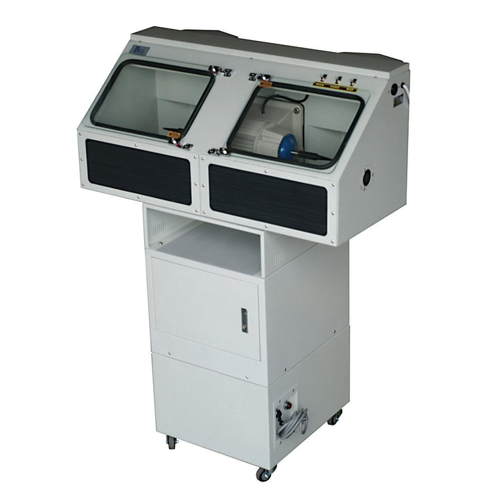 Der neue Stand-Staubsammler und Polierer in voller Größe von Best Built ist eine vollständig geschlossene Einheit auf Rädern, sodass Sie diese Einheit problemlos in der Werkstatt bewegen können. Das Standgerät von Best Built in voller Größe (Best Built-Modellnummer 12-001) verfügt über eine robuste 12-Gauge-Stahlkonstruktion mit vollständig geschlossenen, beleuchteten Polierbereichen, die durch aufklappbare Fenster aus gehärtetem Glas sichtbar sind. Dieser gut gestaltete Staubsammler verfügt über eine zusätzliche Öffnung für den Zugang zum Handstück auf der rechten Seite der Box sowie einen Zugang für die linke und rechte Seite, den Sie individuell nach Ihren Wünschen zuschneiden können. Der doppelseitige, vollseitige Staubabscheider von Best Built entspricht der Saugleistung der Handler 75-Serie und verfügt über mehr Saugleistung als die Quatro Stand-up-Geräte für weit weniger Geld als beide Marken.