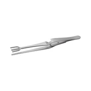 Diese Ringschaftpinzette ist mit oder ohne Sockel erhältlich und wurde speziell für die schwierige Aufgabe entwickelt, Halb- oder Viertelschafte beim Löten ohne Fummeln oder Fehlausrichtung an Ort und Stelle zu halten. Sie eignet sich auch für andere Anwendungen, bei denen ein sanfter, aber fester Halt erforderlich ist. Die einzelne Spitze verfügt über sechs vertikale Rillen für die sichere Positionierung des Schafts. Die dreizackige Spitze verfügt über einen Mittelarm, der bei Nichtgebrauch zum Halten von Halb- oder Viertelschafte wegschwenkt.