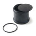 Die Außenmaße des Fasses mit aufgesetztem Deckel betragen 5 Zoll Durchmesser und 4 1/4 Zoll Tiefe.