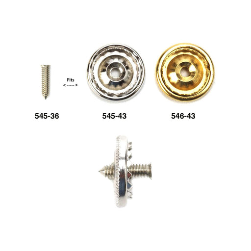 Postes de tornillos y botones traseros de tornillos chapados en plata de níquel, latón y blanco - Diámetro de .085" - Paquetes de 6