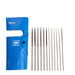 Las limas de aguja de precisión Glardon-Vallorbe Swiss Made se miden desde el punto donde comienzan los dientes hasta el final de la lima. Una lima de anillo semicircular de 6" medirá 8 1/2" de largo desde la punta hasta el final de la espiga, pero se llama lima de 6".