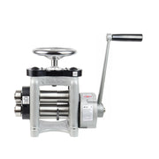 Durston's DRM line of rolling mills, (DRM means Durston Rolling Mill) are recognized as the best quality rolling mills ever made. The Durston DRM Round 130RE Rolling Mill features a 5-to-1 Self Lubricating Gearbox giving maximum efficiency when rolling flat materials up to 6mm or round wire up to 10mm, the 130mm precision hardened rolls have 10 round rolling grooves from 10mm to 1mm in size and a 75mm flat rolling area (Total Roll Width: 130mm). Also includes side extension rollers with 4 half-round profiles: 4mm x 1.25mm, 3mm x 1mm, 2mm x 0.75mm and 1.5mm x 0.5mm giving even more flexibility for professional jewelry makers.