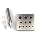 Los bloques de bisel son una herramienta útil para realizar engastes de bisel rápidos y sencillos para piedras facetadas y algunos cabujones. Nuestros bloques de bisel fabricados en Italia están hechos de acero especialmente endurecido y vienen con un punzón a juego. Dado que los punzones pueden romperse con el uso normal, hay disponibles punzones de repuesto para todos nuestros bloques.