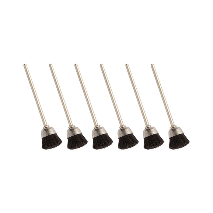Paquete de 6 cepillos de copa Supra MM rígidos de 1/4" con cerdas naturales de 9/16" de diámetro montados en vástagos de 3/32"