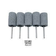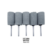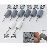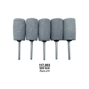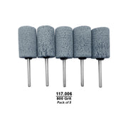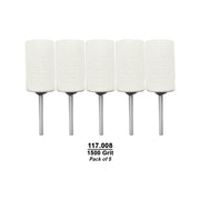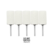 Sold in packs of 5, these sponge type conformable polishing cylinder shaped wheels are made from PolyVinyl Alcohol (PVA) a different material from most polishing wheels. Mounted on 3/32" shafts they measure 15mm wide by 25mm tall (5/8" x 1"). They are elastic so they conform well to reaching curved and irregular shaped material. They are also fairly long lasting so a good value in polishing cylinders. Available in a variety of grits for scratch removal up to a final smooth mirror finished polish. Good for polishing Gold, Silver and Platinum. Also excellent for polishing silver. Made in Japan.