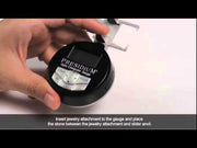 El Presidium Gem Computer Gauge estima el peso e identifica las piedras preciosas con mucha mayor precisión y consistencia que cualquier otro indicador en el mercado. Al igual que el medidor de piedras preciosas digital Presidium, el medidor de computadora mide con una precisión de 0,01 mm, diez veces la precisión de un medidor de piedras preciosas con esfera analógica. Eso lo hace indispensable para el manipulador de diamantes profesional que necesita medir, clasificar y emparejar perfectamente las piedras sueltas. Pero el medidor de la computadora también tiene un poderoso software que hace que estimar los pesos de las piedras preciosas para las tasaciones sea más fácil que nunca. Puede usar el medidor como una herramienta independiente, ingresando datos directamente en el medidor, o puede conectar el medidor a su PC y usar el teclado para ingresar datos.