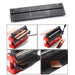 Este nuevo accesorio se puede montar en tres posiciones diferentes en la Profiform 320. Al cortar, se puede montar deslizándolo en la hoja inferior delantera para un ajuste casi al ras o también se puede montar deslizándolo en la parte superior trasera para extender la parte trasera incorporada. en mesa. También puede montar la mesa en el marco inferior para usarla al doblar, perforar o frenar. El tope de ángulo se vende por separado.
