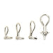 El juego de clips para aretes omega de plata esterlina incluye un conjunto completo que incluye una palanca, una lengüeta y un remache. Estos clips omega plateados se venden ensamblados pero sin remaches. Para usar, retire el remache, cortando o redondeando un extremo del remache, luego suelde, suelde o use láser en la lengüeta del arete. Luego apriete la palanca entre la lengüeta, inserte el remache y, finalmente, coloque el remache.