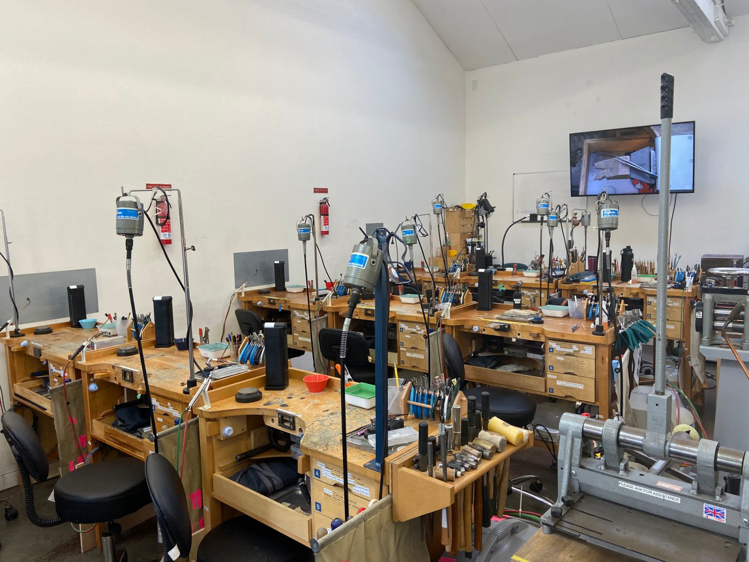 MAA was born out of a desire to train and educate in the art of fine jewelry fabrication, design and the metal arts. Our goal is to provide students with the skills and guidance needed to venture into the metal arts, to begin a career as a bench jeweler or to just enjoy continuous learning and working with their hands, all while bringing forth their creative ideas. Twelve-week apprenticeship programs offered twice a year as well as in-person only jewelry fabrication, stone setting, wax carving and casting, soldering intensives, chasing and repousse and copper smithing.
