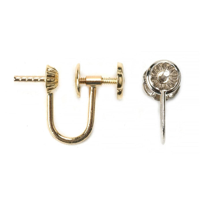 These 14K Yellow Gold American Made ear screws have a 4mm cup with peg. Will fit pearls or stones from 6mm up. Use them to glue on pearls, stone or the jewelry creations that will fit.