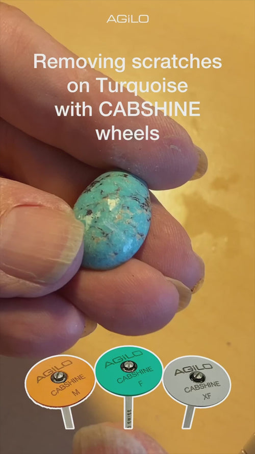 The AGILO CABSHINE Knife Edge Wheel Kit simplifies polishing and repair work on cabochons and other gemstones. This set includes Medium (M), Fine (F), and Extra Fine (XF) diamond wheels in a knife-edge profile for reaching tight areas and stones in settings. Suitable for soft and hard stones—including quartz, ruby, amethyst, crystals, turquoise, and lapis—these wheels enable in-house touch-ups on stones up to ~9 Mohs without water. Recommended speed: 3,000–7,000 rpm.