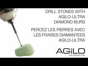AGILO-ULTRA diamond burs drill soft and hard stones thanks to their multiple resistant diamond layers. The round shape facilitates the removal of dust while drilling. Made in Europe exclusively for AGILO. Tested and recommended by Swiss jewelers and lapidary experts. Watch the video to see how to use these remarkable diamond drills.