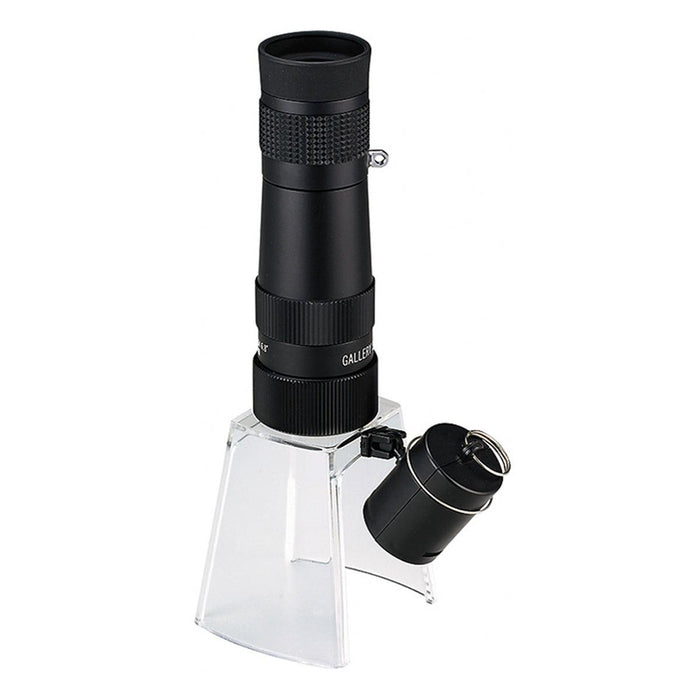 Compact microscope with precision optics and LED light for examining diamond and gemstones. This scope enables you to read the inscription on loose or mounted stones. Made in Japan.