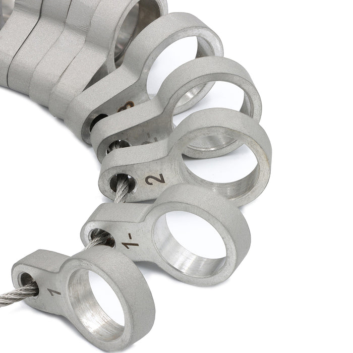 PrecisionFit™ system is used by individual jewelers through to large, multiple chains. This 31-Piece Ring Set (1-16 USA sizes) of steel rings perfectly fits and accompanies the PrecisionFit™ aluminum and steel ring mandrels. It ensures your 1-16 USA ring sizing is right every time, no more cross-referencing with inaccurate ring sizers and mandrels. PrecisionFit™ mandrels and ring gauges are made to International Standard ISO 8653. Machined, hardened, ground and engraved to a perfect finish to ensure 100% accuracy.
