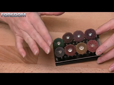 Satin finishers with nylon abrasive heads are suited to cleaning and producing controlled matte finishes, while the felt and cotton buffs are intended for use with polishing compounds to bring up shine on precious metals, plated surfaces and plastics. Work from more aggressive fiber buffs toward finer buffs and softer muslin or felt when blending and finishing.