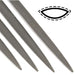 Crossing files are half round on two sides with one side having a larger radius than the other. Tapered in width and thickness. Cut and usable to the point. Used primarily for filing interior curved surfaces. The double radius makes possible the filing at the junction of two curved surfaces.
