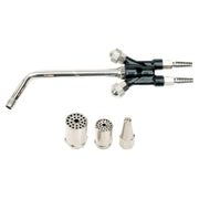 Oxygen & Gas Kit, part number 114.153, includes a single tip for using bottled oxygen and gas. You can also buy the bottled oxygen and gas tip by itself, part number 114.157. The bottled oxygen and gas tip is smaller than the compressed air tips. The small bottled oxygen and gas tip will deliver a hotter, more concentrated flame. Compressed air with the larger compressed air tips, will give you a larger, bushier flame-but not as hot. Use of bottled oxygen with the compressed air tips will destroy the tips.