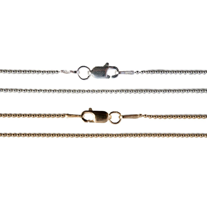 Sterling Silver & YGF 1mm Bead Chain 18" With Lobster Claw Clasps
